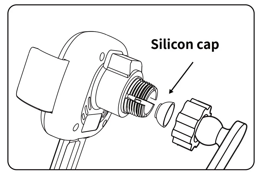 (Put the silicone cap on the connection part of the O-Grab Bal and Air-Up Mount.)
