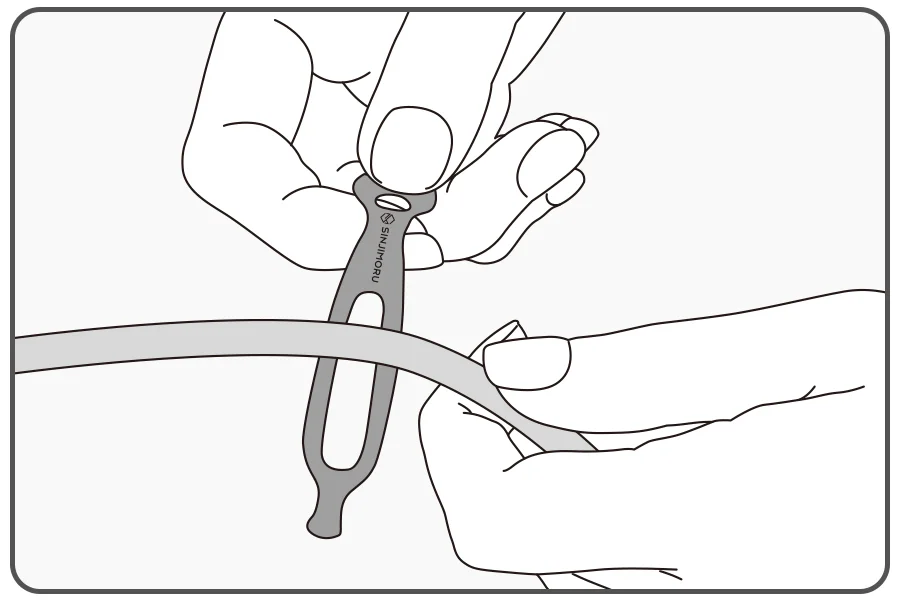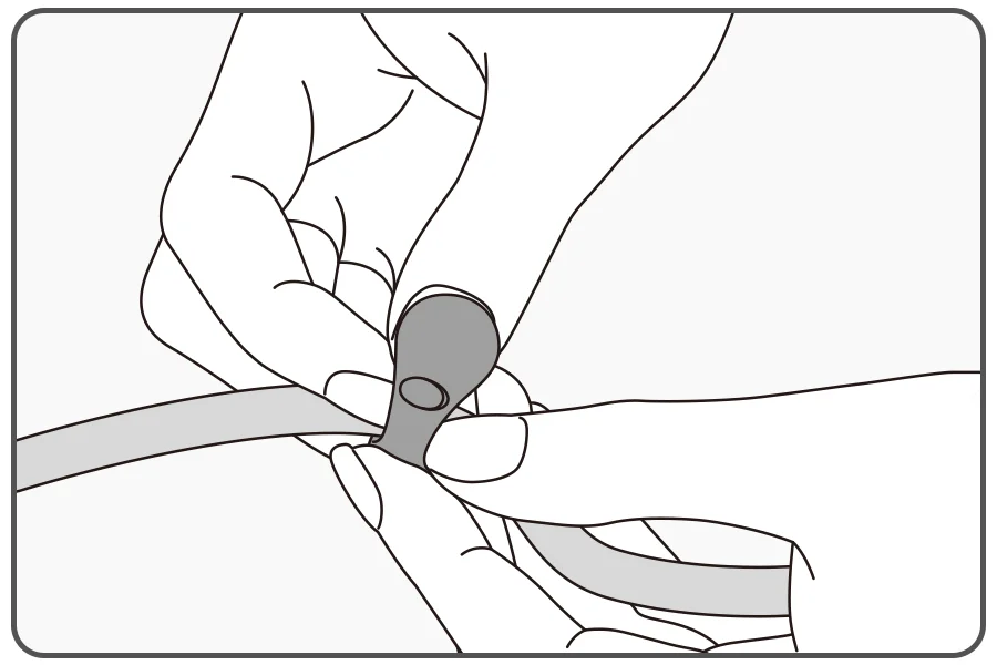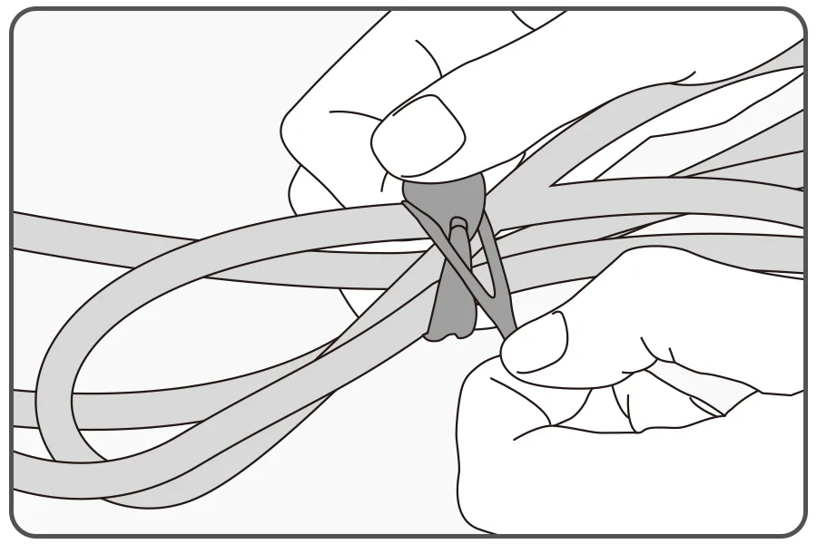 2. After winding the silicone cable tie around the cable once, pull the thin end through the small hole of the holder.